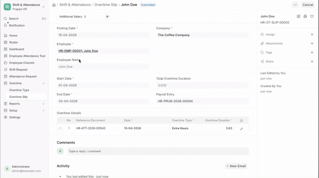 4. Quản lý làm thêm (Overtime) tích hợp trực tiếp vào Payroll